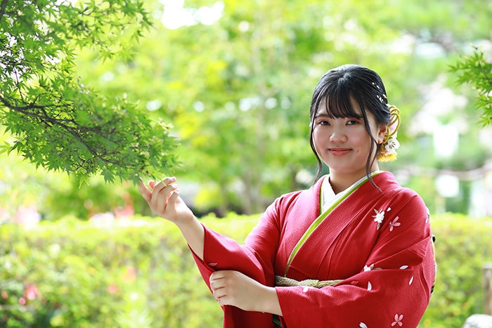 赤色の振袖がよくお似合いで、笑った時のえくぼがとにかくとてもチャーミング!!