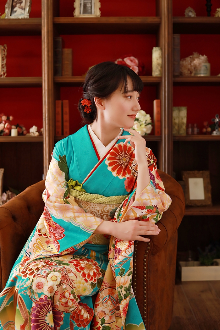 鮮やかなブルーのお振袖がとてもよくお似合いですよね!