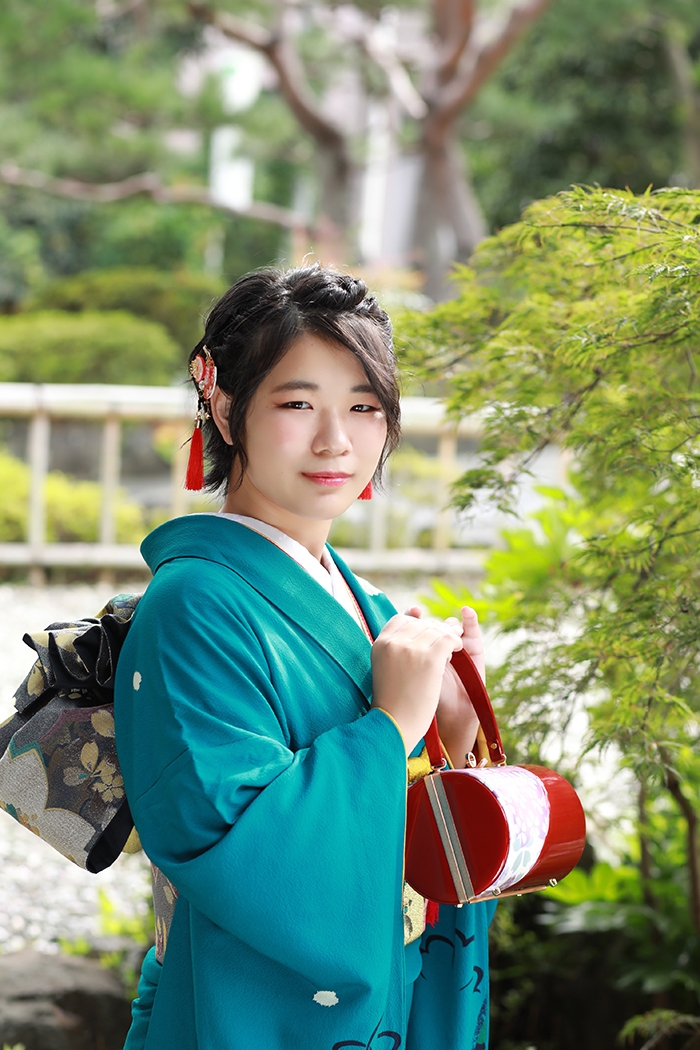 ターコイズブルーのお振袖は、お嬢様のフレッシュさと爽やかさにとてもピッタリですね!