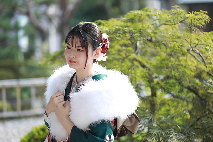今回ご紹介させていただくお写真は、透き通るような綺麗なお肌によく似合うグリーンのお振袖で溢れんばかりの上品さを漂わせている素敵なお嬢様です!