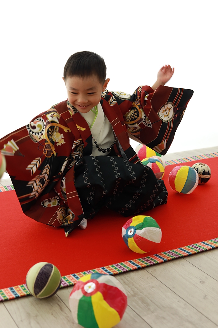 なんとお衣裳はご自分で選んだもので、スタジオ内では紙風船で遊ぶ元気な姿と、庭園では楽しげに傘をさして見上げているなんとも可愛らしい姿のお写真は、見ていてとっても和みますね!